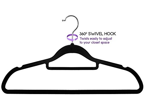 Confezione da 50 appendiabiti in velluto nero di originale: Ansio appendini sono progettati per mantenere la forma indumento. Caratteristiche speciali includono estremità dentellata per azienda cinghie in luogo e una comoda cintura cravatta/bar.