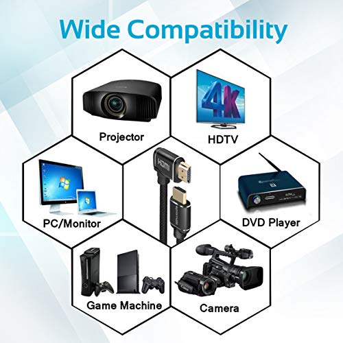 Cavo HDMI, veloce cavo HDMI 1.5M 4K ad angolo retto da 90 gradi con supporto video 3D e connettori placcati oro 24K per HDTV, proiettori, computer, TV LED e console di gioco