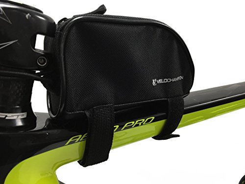 Questo borsello montato su tubo superiore fantastico per offrire ai ciclisti/ triatleti rapido e facile accesso a barrette energetiche, telefono, portafoglio, attrezzi o altri piccoli accessori essenziali che devono avere a portata di mano durante la pedalata. Lo scomparto principale con apertura superiore a cui si accede tramite zip, mantiene il contenuto al sicuro.