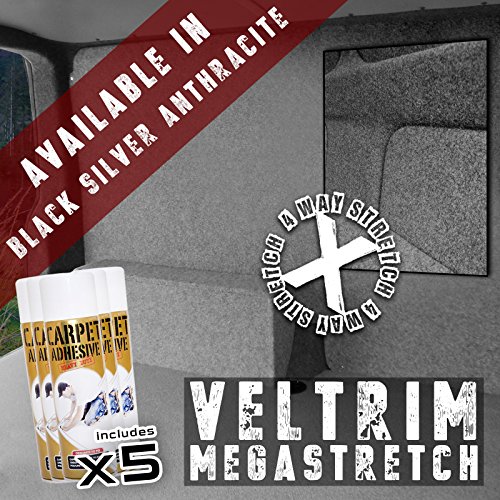 5 m X 2 m VELTRIM MEGA 4 WAY STRETCH VAN LINING-MEGA contenere GLUE-5 X, colore: antracite