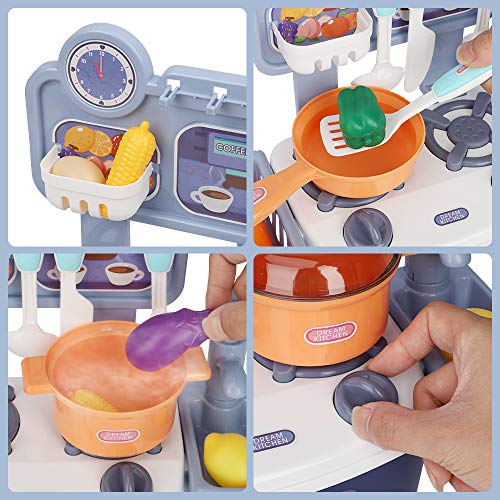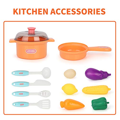 Veluoess 23 pezzi giocattolo per bambini mini cucina playset, cucina gioco di ruolo giocattolo con accessori simulazione mini pentole giocattolo fingere kit di cottura per bambini 3+