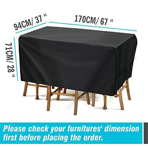 【Dimensioni Perfette】 - Velway copertura del tavolo rettangolare misura 170 x 94 x 71cm / 67 x 37 x 28 pollici (Lunghezza*Larghezza*Altezza). Il telo è adatto non solo per mobili da giardino, ma anche per varie forme di mobili da interno ed esterno, come divano, tavolino da caffè, panche, mobili in rattan, ecc. Si prega di misurare i mobili prima dell'acquisto, in particolare la profondità comprende le sedie se metti insieme le sedie con il tavolo.