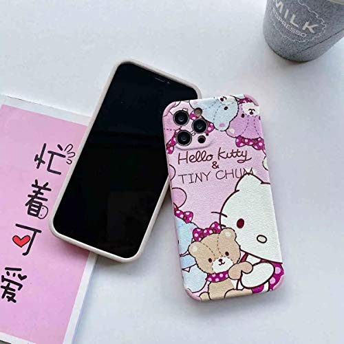 Velyon Cartoon carino Hello Kitty gatto orso compatibile con iPhone 11/11PRO / 12/12PRO include custodia in morbido silicone per le donne (iPhone 12, rosa ciao gattino)