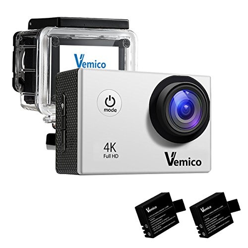 Vemico 4K Action Camera Ultra HD Impermeabile Casco Camera 16MP WIFI Sport 40M Videocamera Subacquea Schermo LCD 2.0 con Controllo Remoto 2.4G e 3 Batterie Ricaricabili
