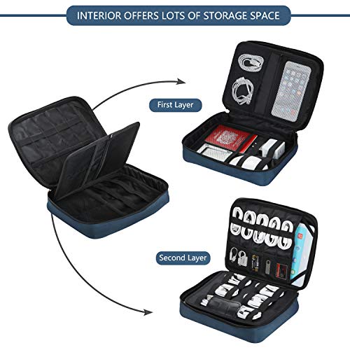 Vemingo Cable Organizer Bag Custodia resistente all'acqua Custodia elettronica Accessori Organizer Custodia da viaggio Custodia per cavi/Disco rigido/Caricatore portatile/Tablet 26x20x5,2 cm, Blu