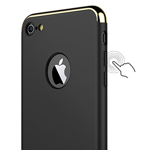 VemMore Cover iPhone 7 Custodia PC Cover 360 Gradi Protezione Slim Sottile Case Rigida 3 in 1 [Antigraffio, Antiurto, Anticaduta, Antiscivolo] Plastica Dura Bumper Caso Cover Protettiva per iPhone 7 - Nero
