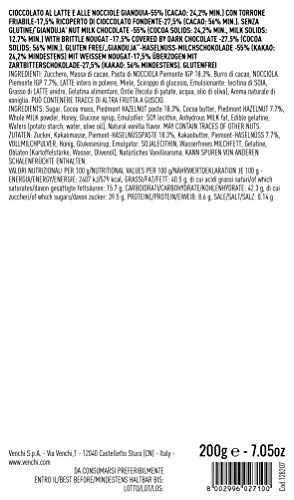 Venchi - Stecca di Torrone Gianduia con Nocciole Piemonte IGP, 200g - Idea Regalo - Senza Glutine