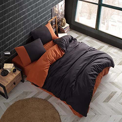 Vency Plain Set Copripiumino Matrimoniale 240x220 con Federe, Colore Nero Rame, in Cotone