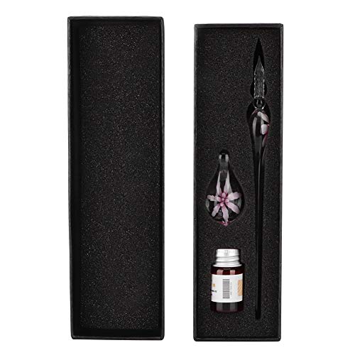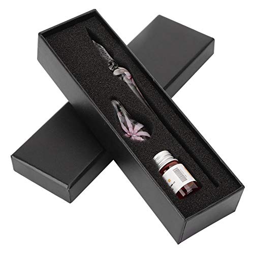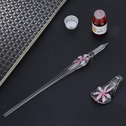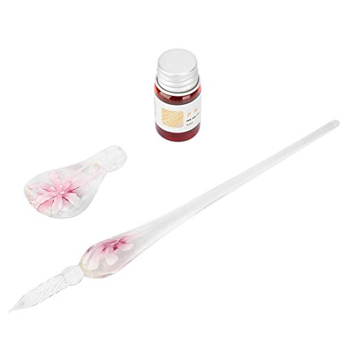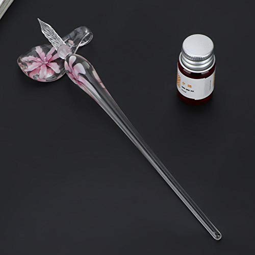 Vendite Pazze Penna stilografica, Penna stilografica in Vetro Retro Fiore Elegante in Cristallo con Penna Porta Inchiostro(Rosa)
