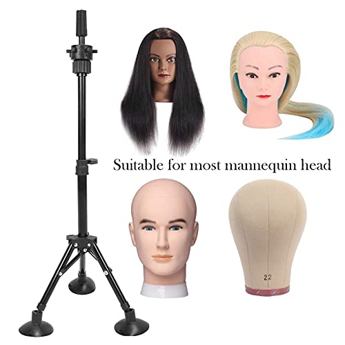 Vendite Pazze Treppiede per testina da parrucchiere, supporto per manichino robusto pieghevole in metallo leggero e stabile per negozio di barbiere per barbiere(Nero)