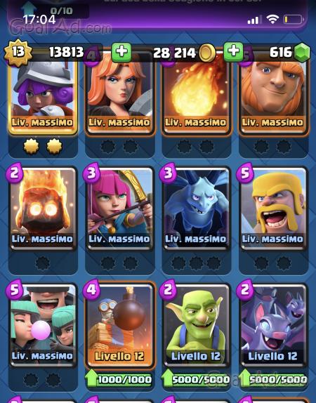 Vendo account clash Royale liv 13, 17 carte al 13 e 28 carte al 12