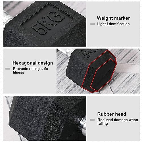 2 x 5 kg (venduto in coppia) manubri esagonali Set braccio peso manuale manubri esagonali per allenamento di forza a casa aerobico