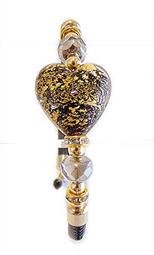 VENEZIA CLASSICA - Bracciale da Donna con Cuore in Vetro di Murano Originale e vera pelle Toscana, Collezione Tuscany, con foglia in argento e oro 24kt effetto spolverato, Made in Italy (Nero/Oro)