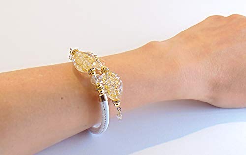 VENEZIA CLASSICA - Bracciale da Donna con perle in Vetro di Murano Originale e vera pelle Toscana, Collezione Ginger, con foglia in oro 24kt, Made in Italy certificato