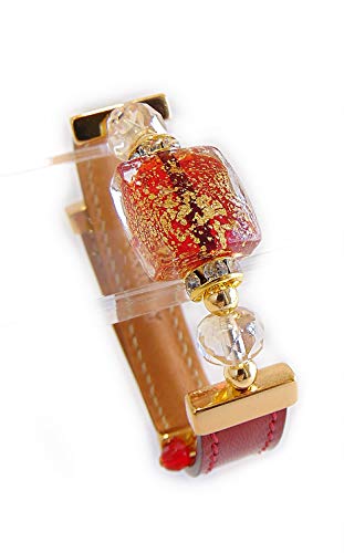 VENEZIA CLASSICA - Bracciale da Donna con perle in Vetro di Murano Originale e vera pelle Toscana, Collezione Kate, con foglia in oro 24kt o argento, Made in Italy certificato (rosso)