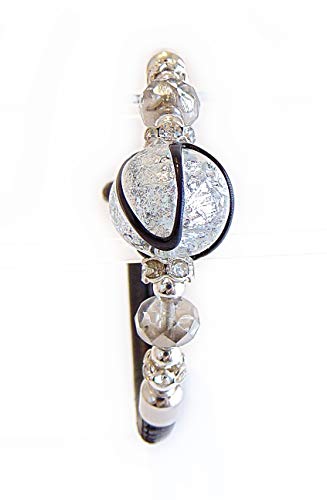 VENEZIA CLASSICA - Bracciale da Donna con perle in Vetro di Murano Originale e vera pelle Toscana, Collezione Aida, con foglia in argento e oro 24kt, Made in Italy certificato (nero argento)