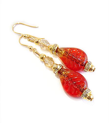 VENEZIA CLASSICA - Orecchini da Donna con perle in Vetro di Murano Originale, Collezione Ginger, con foglia in oro 24kt, Made in Italy certificato (rosso)
