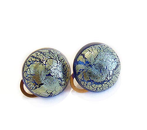 VENEZIA CLASSICA - Orecchini da Donna in Vetro di Murano Originale con foglia in oro 24kt, modello Cabochon, chiusura a Clip, Made In Italy certificato (blu/oro)