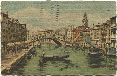 1924 Venezia Ponte Rialto Canal Grande gondole battelli Marseille FP COL VG ANIM Cartolina Postale