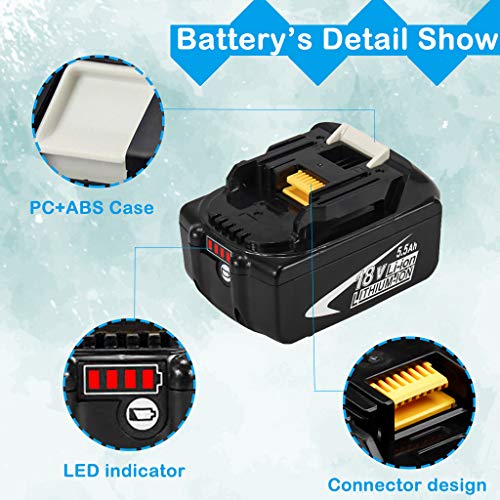 【Dettagli】 Capacità: 5,5 Ah / 5500 mAh | Voltaggio: 18V | Nuovo di zecca | Sostituisci per Makita batteria 18V