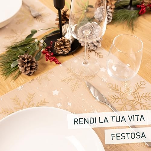 Venilia Set di tovagliette con fiocchi di neve dorati, trasparenti, per sala da pranzo, sottobicchieri, decorazione da tavola natalizia, lavabile, per alimenti, 45 x 30 cm