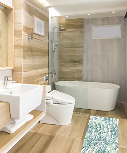 Venilia Venisoft 54801 - Tappetino in schiuma morbida con motivo Ficus, antiscivolo, in PVC e poliestere, 65 x 200 cm, colore: bianco petrolio