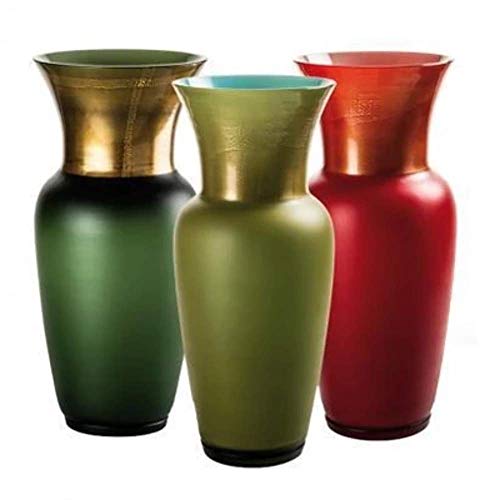 Venini Vaso Opalino Verde Mela Satin/Foglia Oro