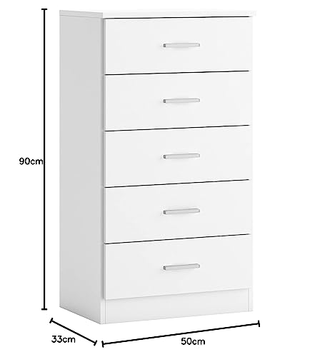 VS Venta-stock Cassettiera Dublin 5 Cassetti color Bianco, guide metalliche, 50 (Larghezza) 33 cm (Profondità) 90 cm (Altezza)