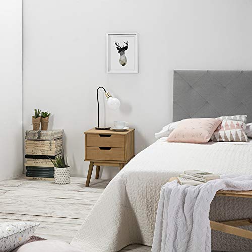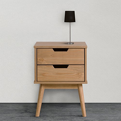 VS Venta-stock Comodino Bali con 2 cassetti, Realizzato in Pino Massiccio, Guide in Metallo, 40 x 40 x 52 cm