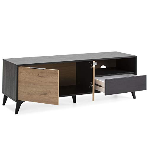 VS Venta-stock Mobile TV Koln 2 Porte e 1 cassetto, Color Nero Spazzolato e Legno, 136,5 cm (Larghezza) 40 cm (profonditá) 48,5 cm (Altezza)