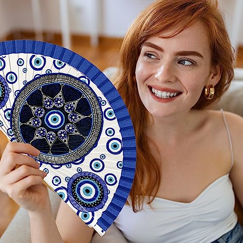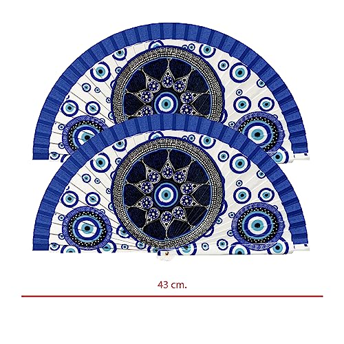 Ventagli originali con stampa a occhio turco. Ventagli occhio turco mano di Fatima. Ventaglio in legno e tessuto decorato. Ventagli economici in legno con occhio turco. (69)