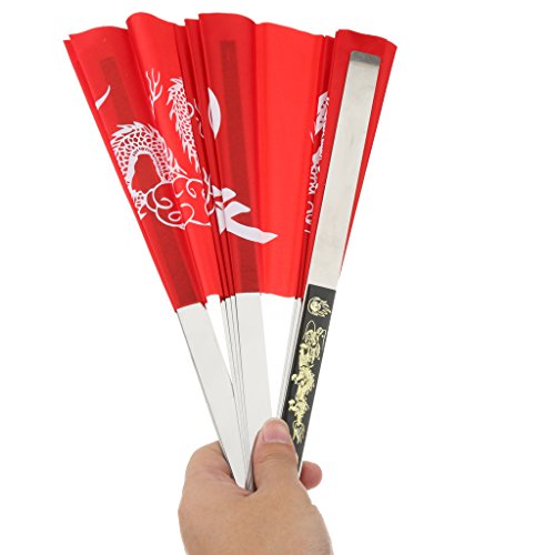 Ventaglio cinese Tai Chi, motivo: drago, struttura in acciaio Inox