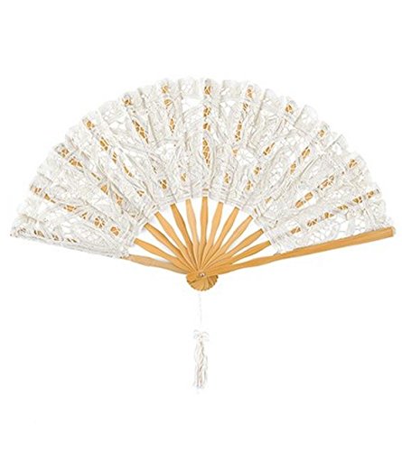 Ventaglio In Legno e Pizzo Bianco Matrimonio Sposa 21 cm Sposa Accessori EmozionarSi