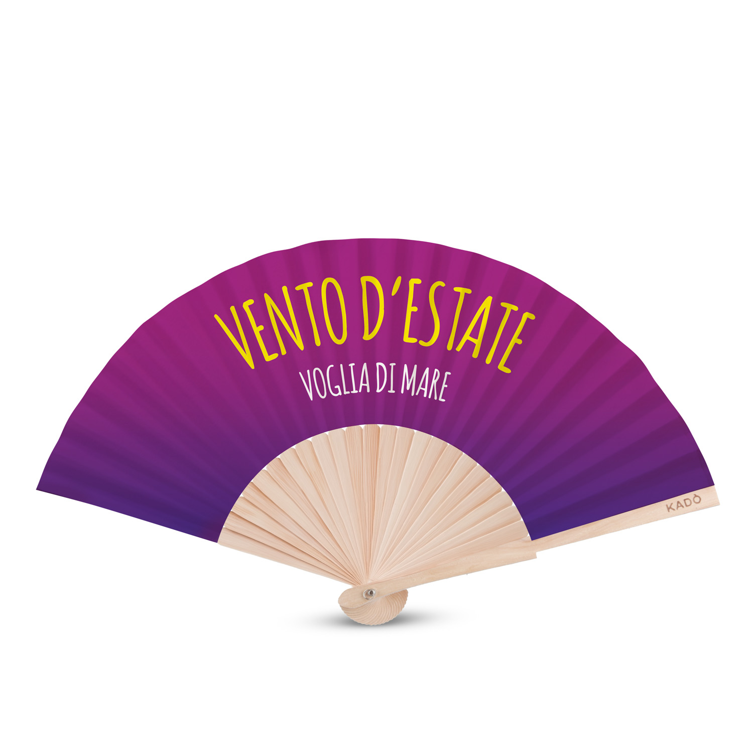Ventaglio legno con scritta vento d'estate viola;