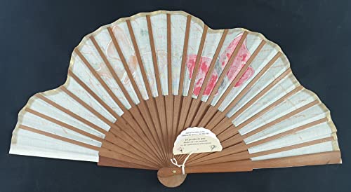 Ventaglio spagnolo fatto con legno di perale e tessuto di cotone dipinto a mano in toni di lilla, intitolato amore eterno (Verde)