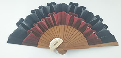 Ventaglio spagnolo in legno dipinto a mano che simula il rilievo (Nero e rosso)