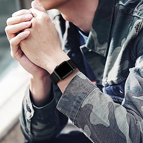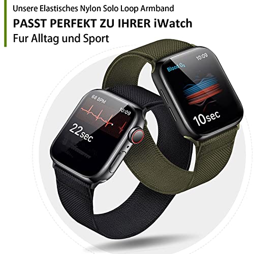 Ventdest Cinturino Compatibile con Apple Watch Cinturino 45mm 44mm 42mm, Regolabile in Nylon Elastico Intrecciato Cinturino di Ricambio per iWatch Series 7/SE/6/5/4/3/2/1, Nero/Army Green