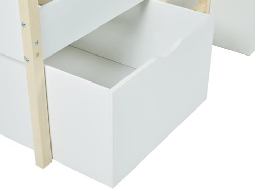 Letto mezza altezza con 2 grandi cassetti - 90 x 190 cm - Dimensioni: L199 x P100 x H81 cm - Gambe: Abete rosso massello. Struttura: Truciolato. Colore: Bianco e Rovere. Stile: Scandinavo - Con rete - SISSY - Vola alto con il letto SISSY