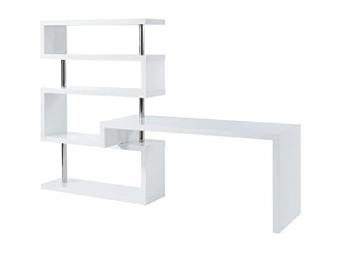 Scrivania modulare con scaffali NICEPHORE - MDF laccato bianco - 4 scaffali - Piano girevole - Stile: Design - Dimensioni: L160/247,5xP60xH164,5 cm.