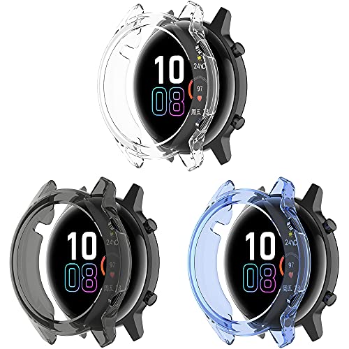 VENTER custodie compatibili con Honor Magic Watch 2 46mm,AntiGraffio Anti Goccia TPU Morbida per Guscio paraurti per Honor Magic Watch 2 46mm Smartwatch,Chiaro+Nero+Blu