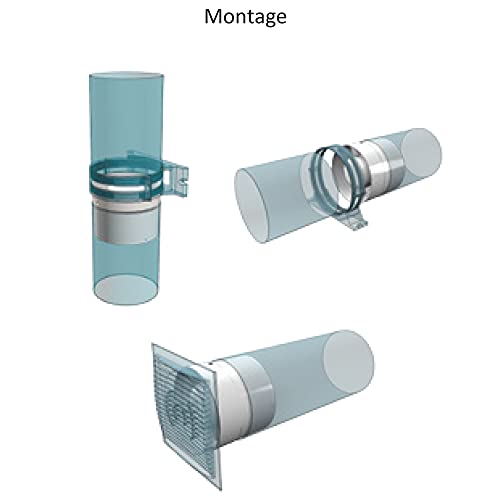Alloggiamento del ventilatore di scarico in linea, una parte centrale con motore, ruota e terminale implementato, è rimovibile e consente una facile manutenzione. Questa parte è collegata alle parti dell'ugello con fascette flessibili Klick-Lock