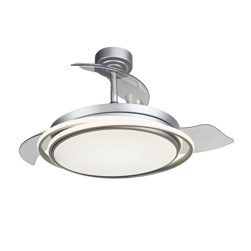 Ventola LED con motore DC. Il ventilatore ha un elemento estetico differenziante, oltre alla tradizionale fonte luminosa dei ventilatori, il modello Antila, presenta due strisce che avvolgono il corpo del ventilatore. Queste strisce possono illuminarsi