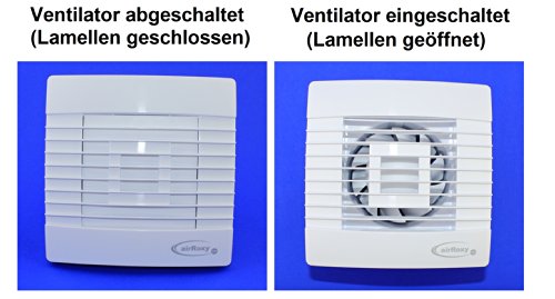 Ventilatore da bagno e da cucina a lamelle, con sensore di movimento/presenza e timer, avvio posticipato, bianco, Ø 100 mm, da parete, prestigeTS, da incasso