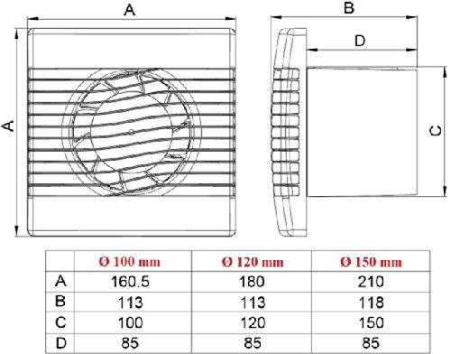 Ventilatore da bagno e da cucina con timer/avvio posticipato, da soffitto e parete, bianco, diametro 100 mm, a incasso