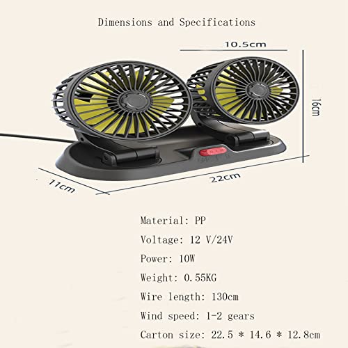 Ventilatore 12 Volt Per Barca, Ventilatore 12 Volt Potente Con Presa Accendisigari Da 12v/24v Rotazione Manuale a 360 Gradi Portatili Due Velocit¨¤ Regolabile Ventola Per Auto a Doppia Testa(Size:24V)