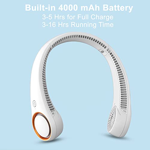 Ventilatore da Collo, Ventilatore Collo Portatile Ricaricabile, Mini USB Ventilatore Indossabile, Ventilatore Collo Senza Lama a Batteria da 4000 mAh per Ufficio, Viaggi, Aria Aperta e Sport, Bianco