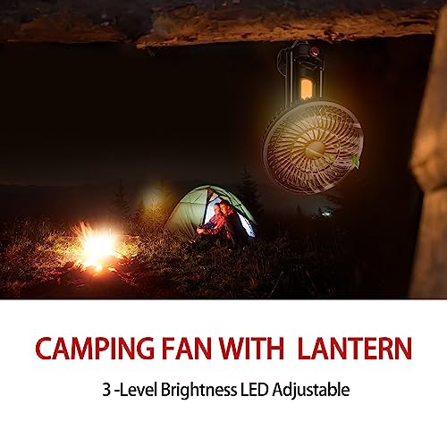 Ventola da campeggio portatile con luce a LED: questa ventola da campeggio è progettata con una lanterna a LED a 3 livelli di luminosità che può fornirti abbastanza luce di notte. Fornisce una luce morbida e non abbagliante, protegge la tua vista. Con un design a gancio umanizzato, puoi appendilo alla tenda, alle macchine, ai rami e alle pareti.
