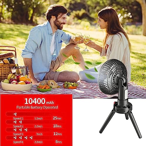 20CM Ventilatore Grande USB Ricaricabile a 10400mAh Batteria,10-25 ore Lavorando,Automatico Oscillante 180°,Ventilatore Portatile a LED con Treppiede pieghevole, per Ufficio, Campeggio,Tenda