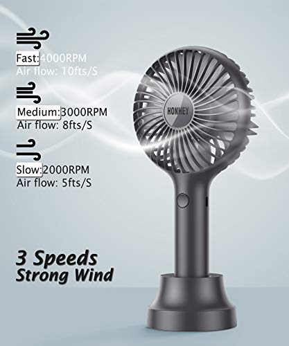Mini Ventilatore, HonHey USB Portatile Ricaricabile Ventilatore a Mano, Funzionamento Batteria 8 a 12 Ore di Utilizzo Silenzios 3 Velocità per Scrivania Ufficio Casa L'aperto Viaggi - Grigio