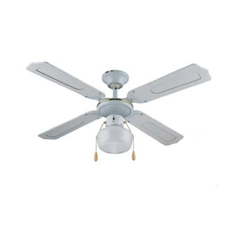 Ø 107 cm tensione 230v / 50hz - potenza assorbita 55w - motore a 3 velocità - 4 pale con finiture colore tipo legno - plafoniera in vetro per luce azionabile da apposito interruttore esterno con lampadina da 60w - altezza dal soffitto cm.45 - dimensioni 42x19x21.5 cm - funzione estate/inverno Categoria merceologica: Condizionatori, deumidificatori, ventilatori - Riscaldamento e climatizzazione - Ventilatori a soffitto